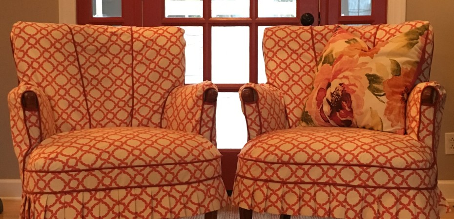 […] “Coral Cuteness” highlights twin chairs that were in desperate need of an update in a fun color. The fabric was old and fraying but nothing a slipcover couldn’t hide. You wouldn’t believe they are the same chair. […]