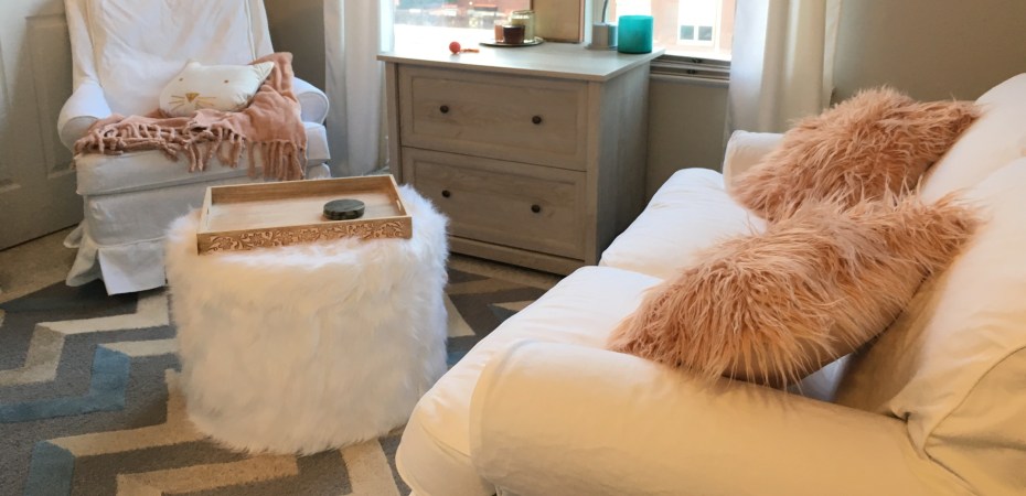 Secretly it’s everyone’s dream to have a space of their own to retreat to. Whether you call it a man-cave or she-shed., it’s a brilliant concept. Louisa has a loft in her apartment that she was converting to her she-shed. She was envisioning a clean crisp look and modern sophistication with a little frill and fun.