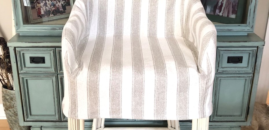 I was pretty happy with they way they turned out but in true ‘Denise’ fashion, I got bored with them and wanted to change them up again. A few blog posts ago I talked about Inspiration and how you never know when or where it will strike. Well, this past year I binged a bit on the Netflix series, “Grace and Frankie”. What does this have to do with my stools, you say? Well, Grace (Jane Fonda) and Frankie (Lily Tomlin) live in a gorgeous beach house in La Jolla, CA. She had these slipcovered stools that I just loved and I thought, well, I can do something like that! So that became my next inspiration for phase two of these repurposed stools.