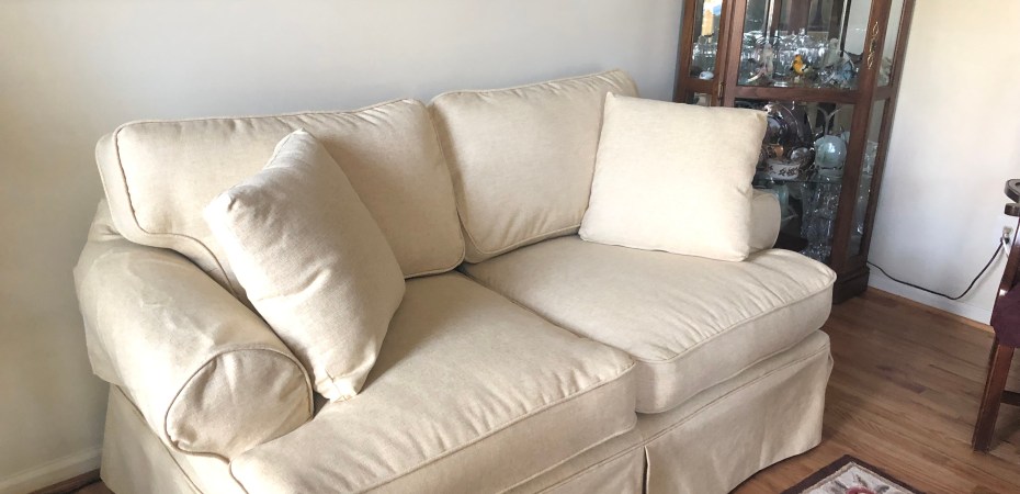 A set of arm covers to protect the arms, a couple of updated throw pillows and you have a “new” loveseat that pulls together the whole room.