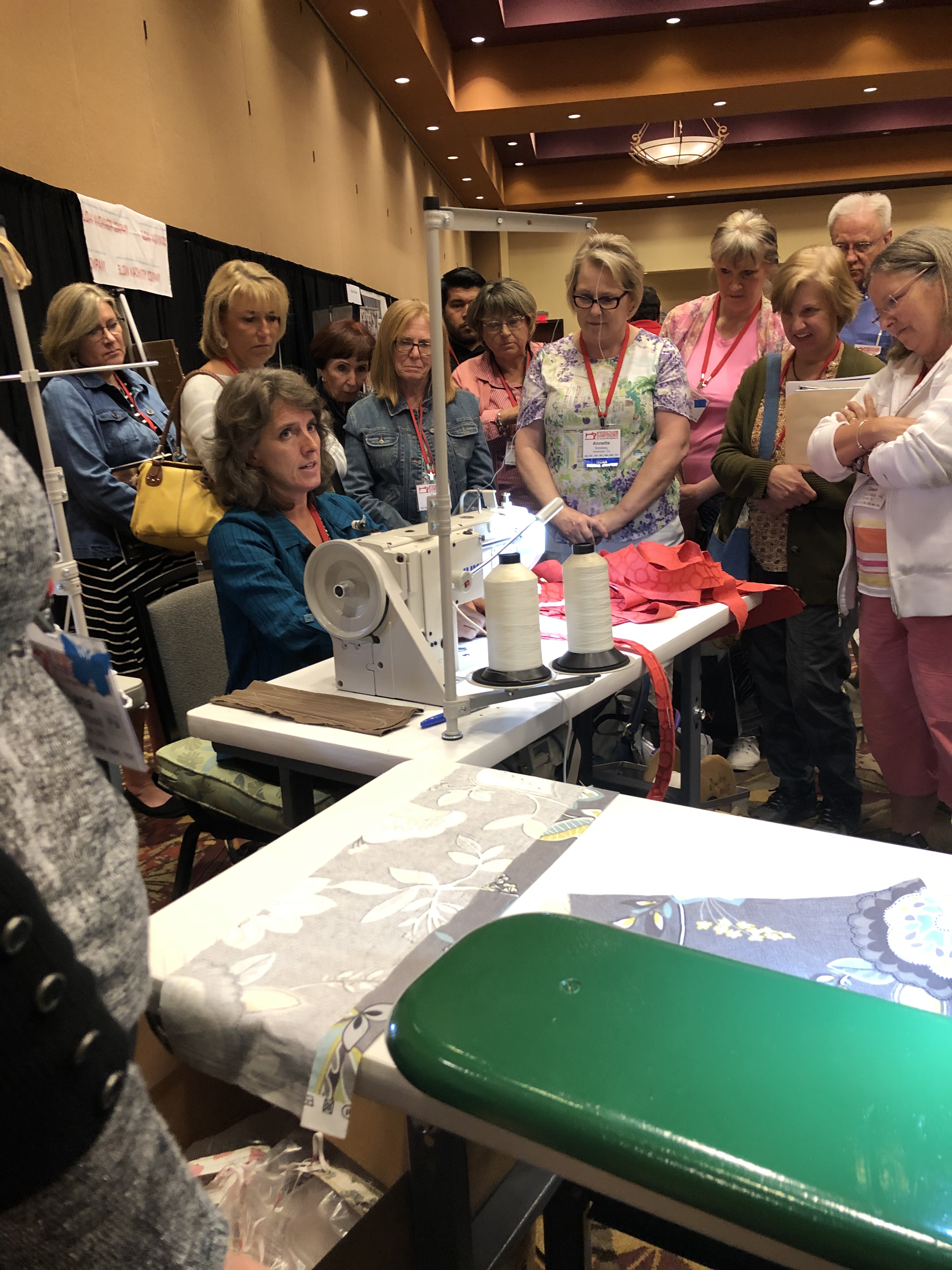 The Custom Workroom Conference, an annual three-day event is filled with classes that cover anything from productivity, work/life balance, upholstery topics, slipcovers, social media, window treatments, machine and workroom set-up topics. They offered an Exhibitor Marketplace to meet vendors that provide products we need for our business , demonstrations of techniques, inspirational speakers and lots of opportunities to meet and collaborate with other people doing the same thing.