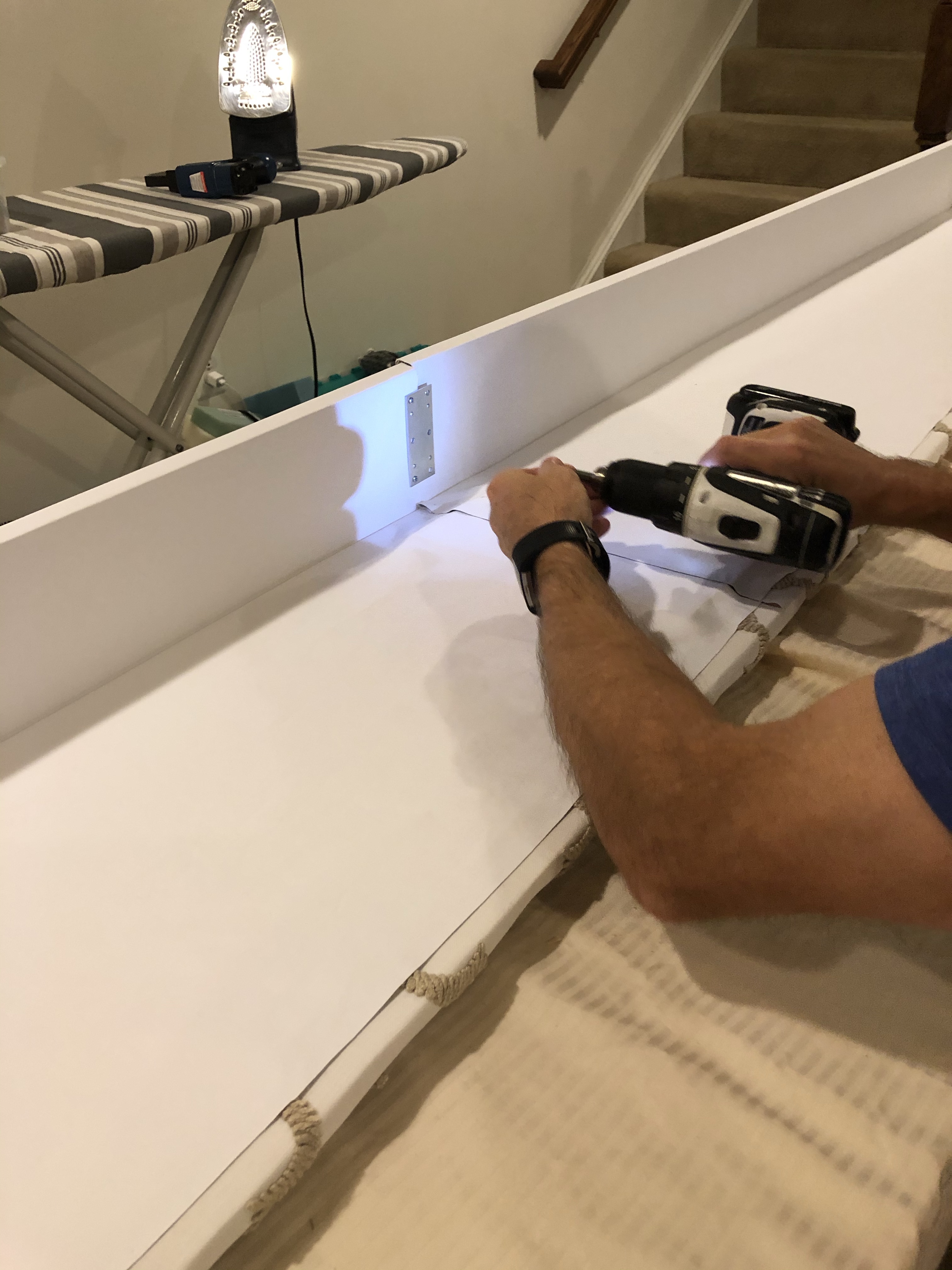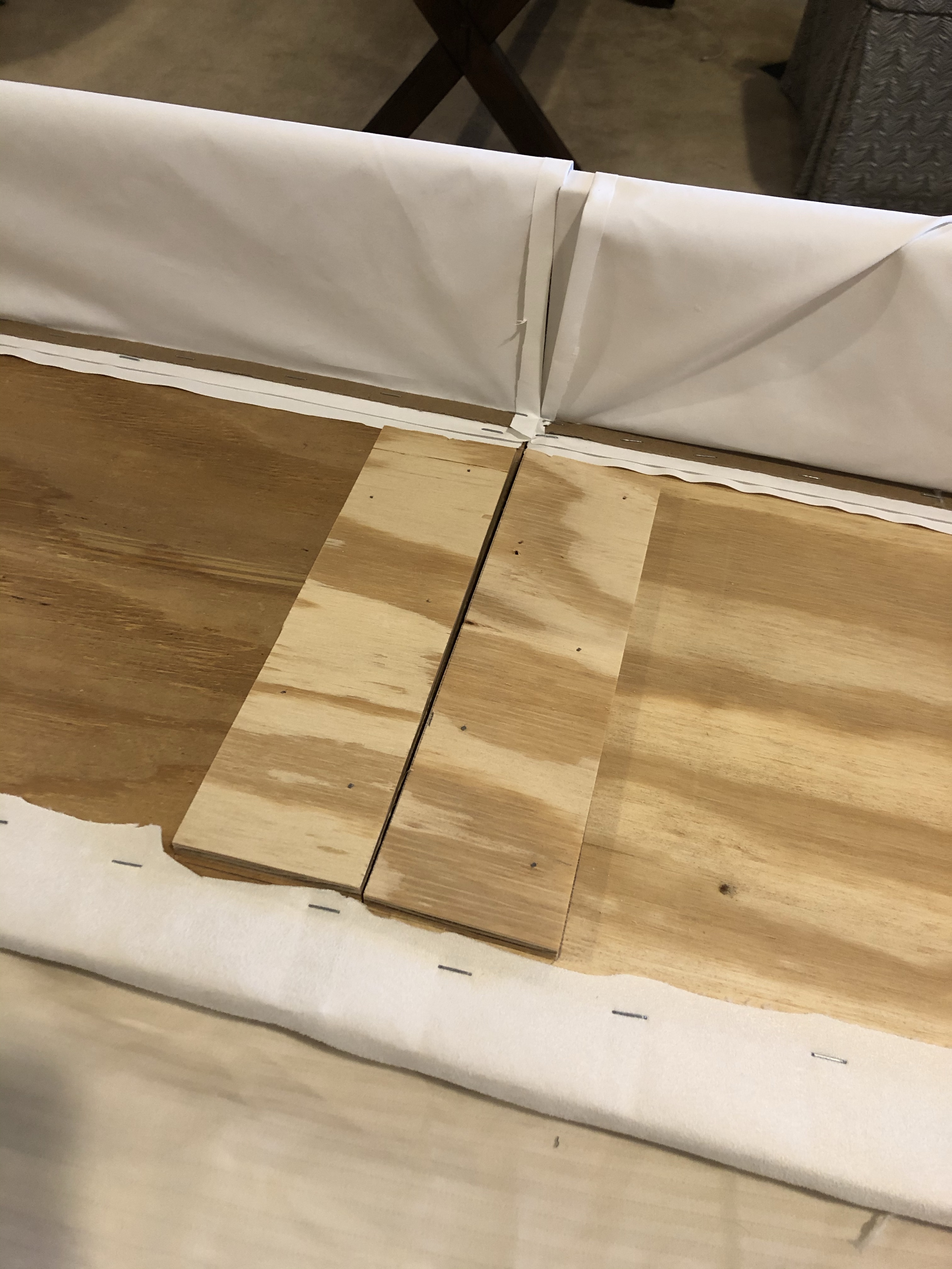 I wanted to make sure I made them professionally and knew what I was doing. So after watching a video from Kim’s Upholstery, I constructed my first cornice for a window at our lake house. It turned out pretty good! I was ready!