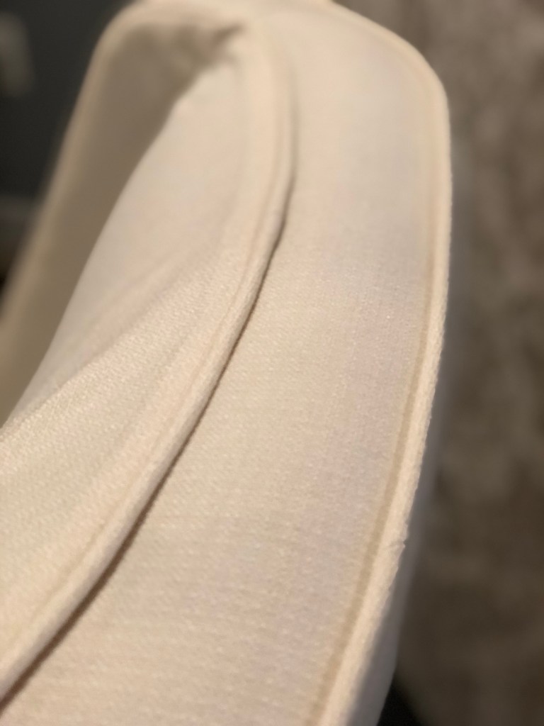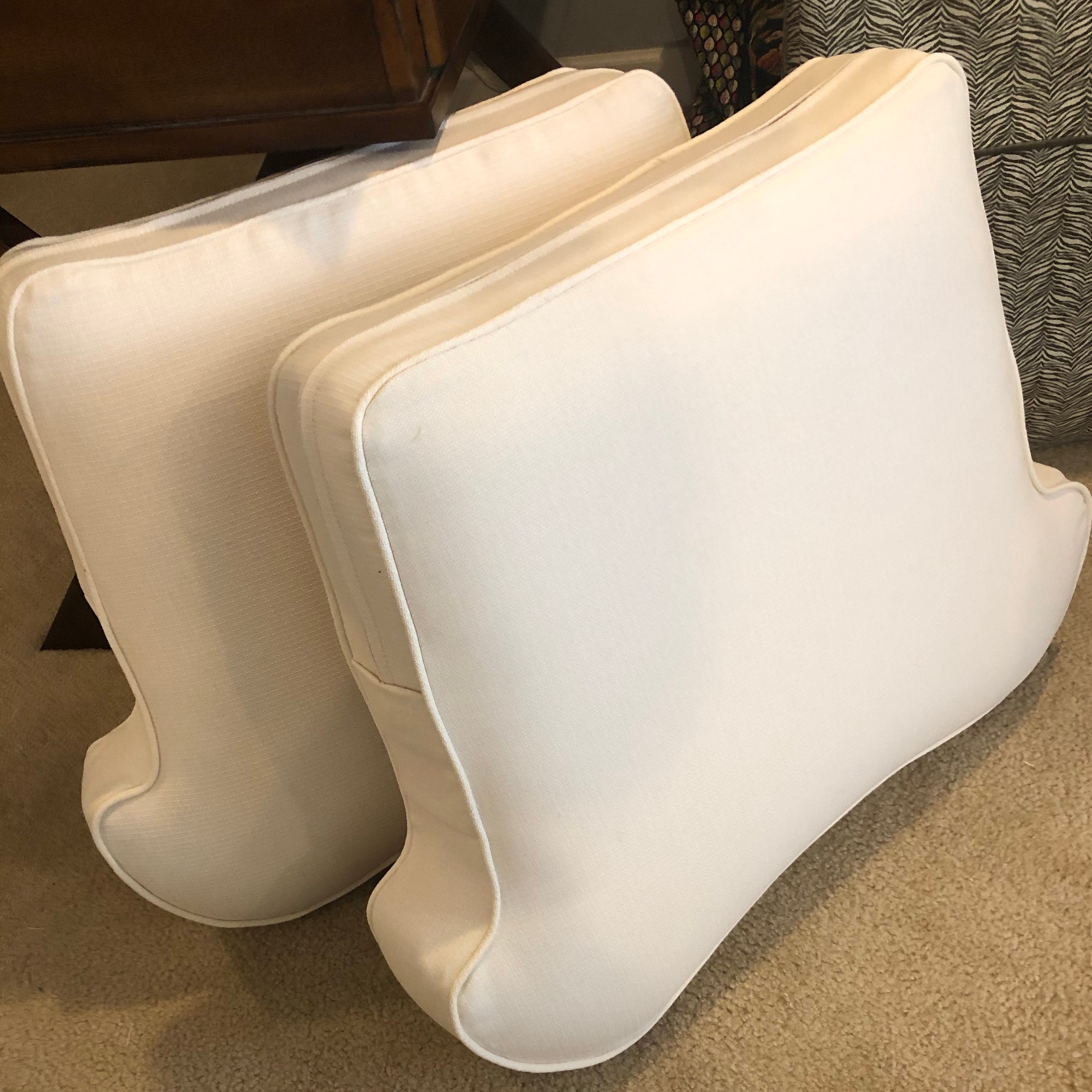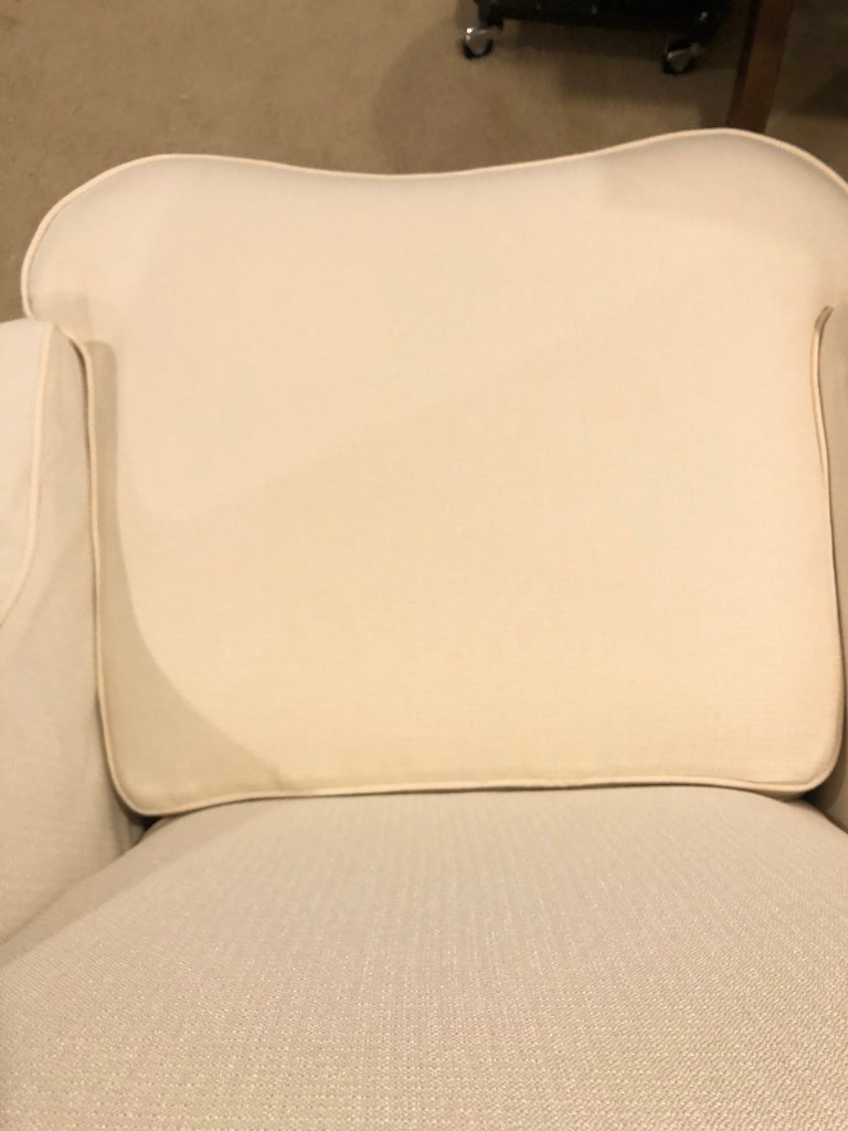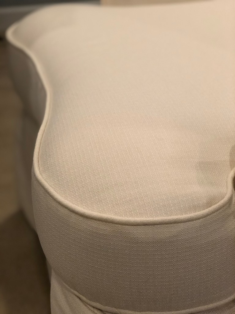 This chair in particular had a very tight and shallow “tuck-in” room on the seat deck and and bottom of the back. Instead of using my fingers to push the excess fabric needed to hold the slipcover in place in the tight space, I found a handy tool that easily slides in and creates a nice clean look….the 6″ wood ruler. Who knew! I love that I can always learn something new in this job.