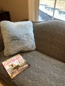 This little loveseat is also something I picked up for close to nothing a long time ago. In fact, it was one of my first slipcovers that I made. It would get it’s third and hopefully last facelift. I wanted something fun and fancy for my workspace to sit on and dream, nap, write or just look out the front window at the front yard and sunset.