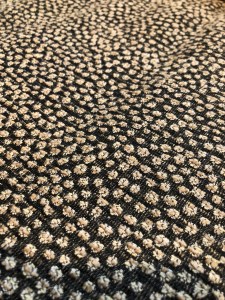 It looked like it might be the right size and they would sell it for $150. I was willing to pay that, but upon a closer look, noticed a small hole in the rug. I knew it would underneath the chairs and was not worried about it. But when I asked if they would take less for it because of this hole, they said they would sell it for $50! Can’t beat that.