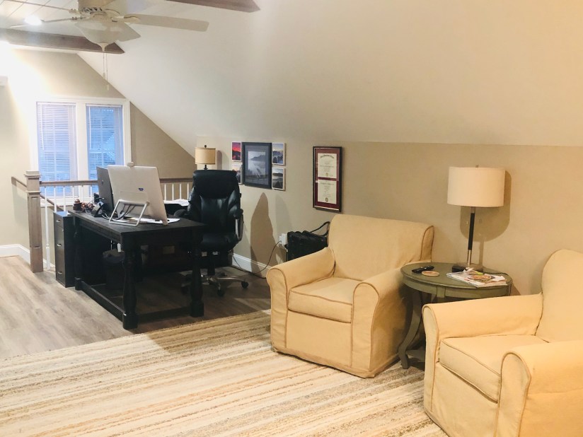 I can’t imagine not having this space. When not used for my husband’s work or my creative space, it has also been a place to be able to sneak away to early in the morning to drink coffee and watch TV when the house is full. It has also accommodated overflow guests with an air mattress. I guess that is why they call it a BONUS room.