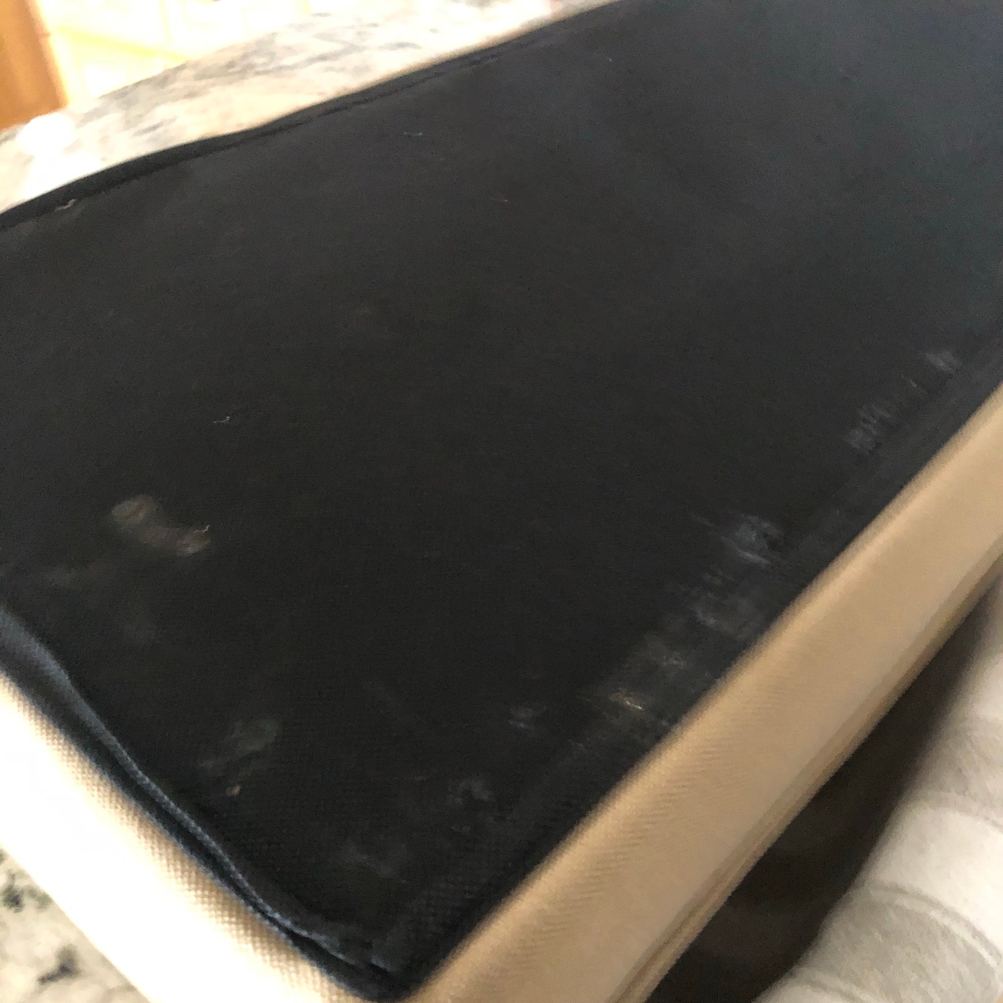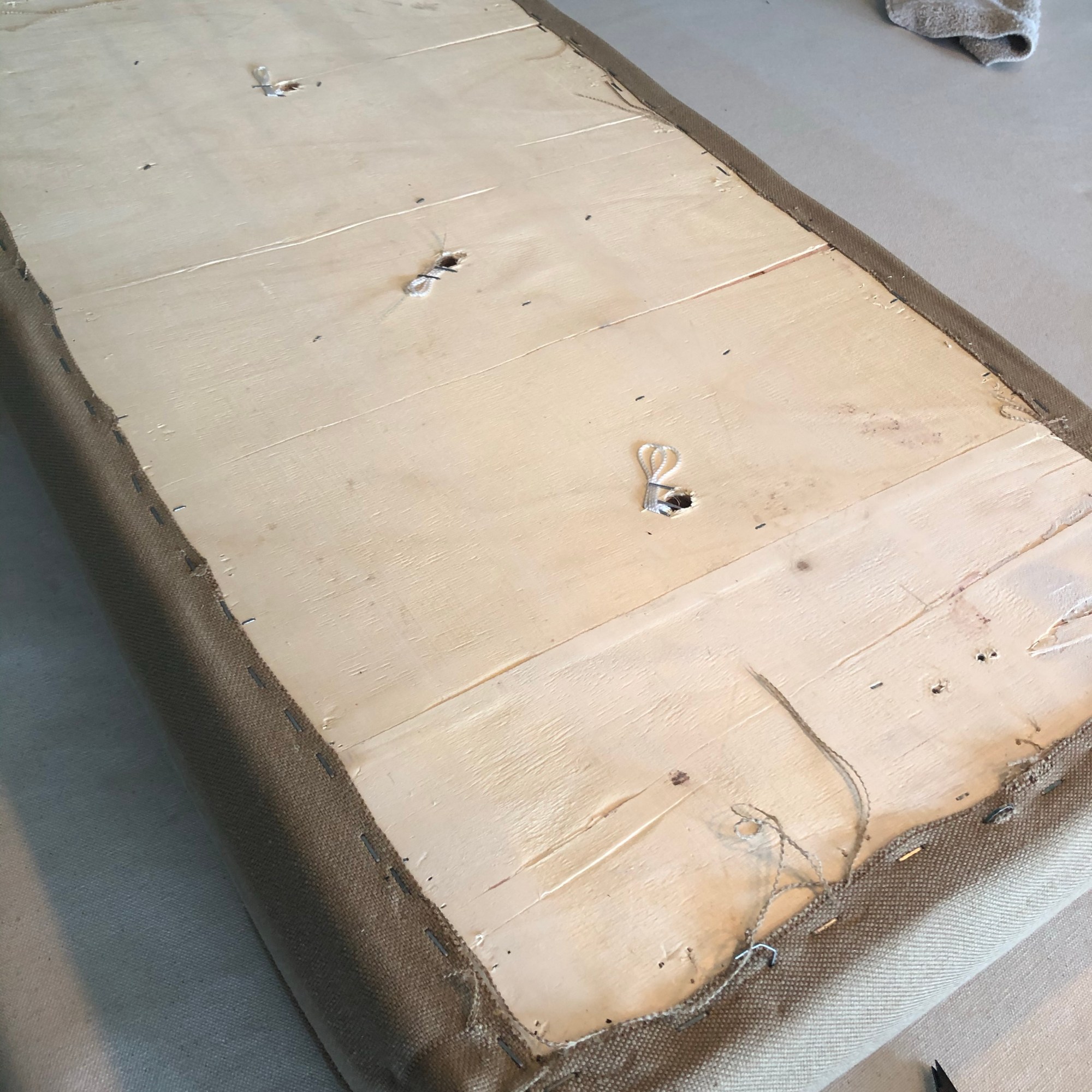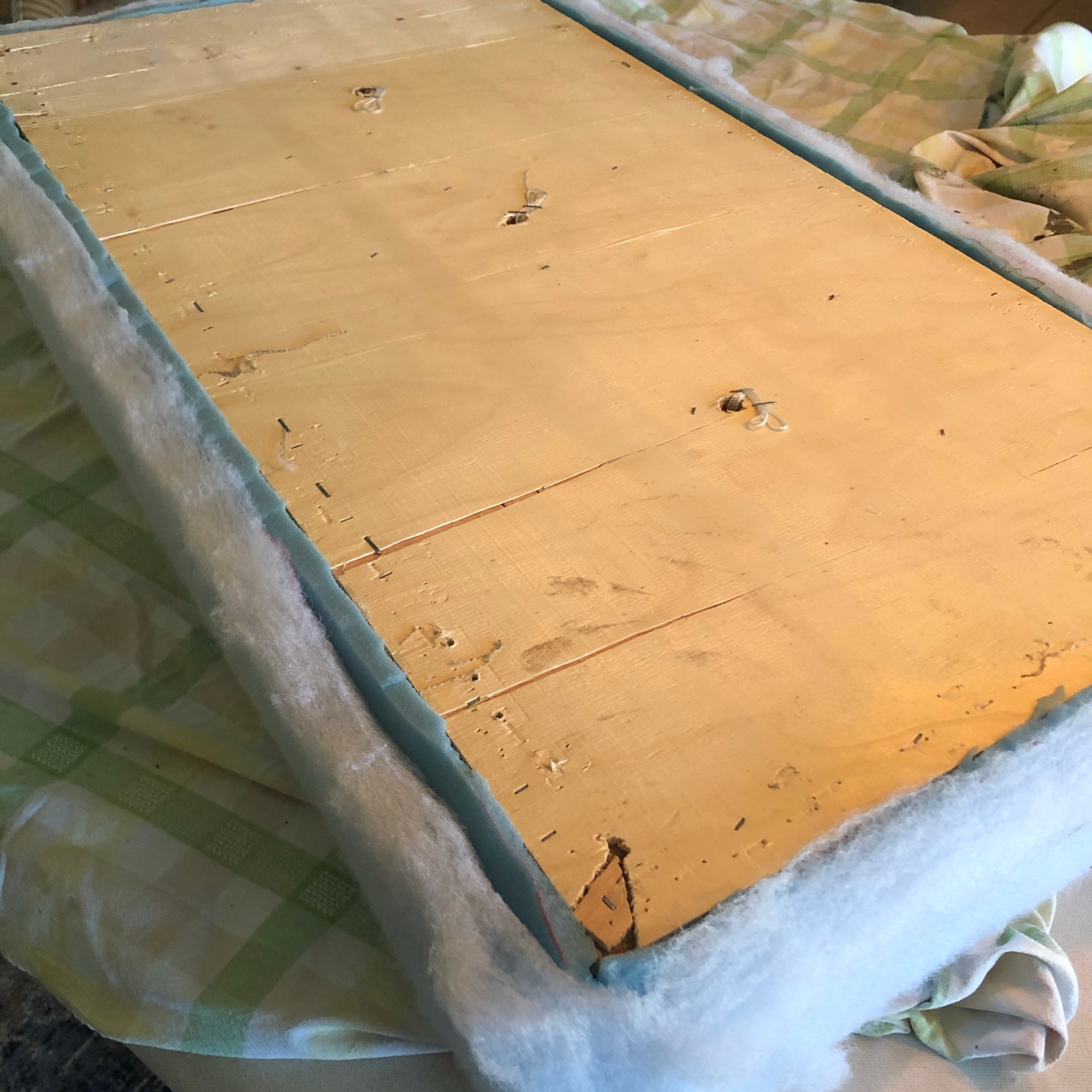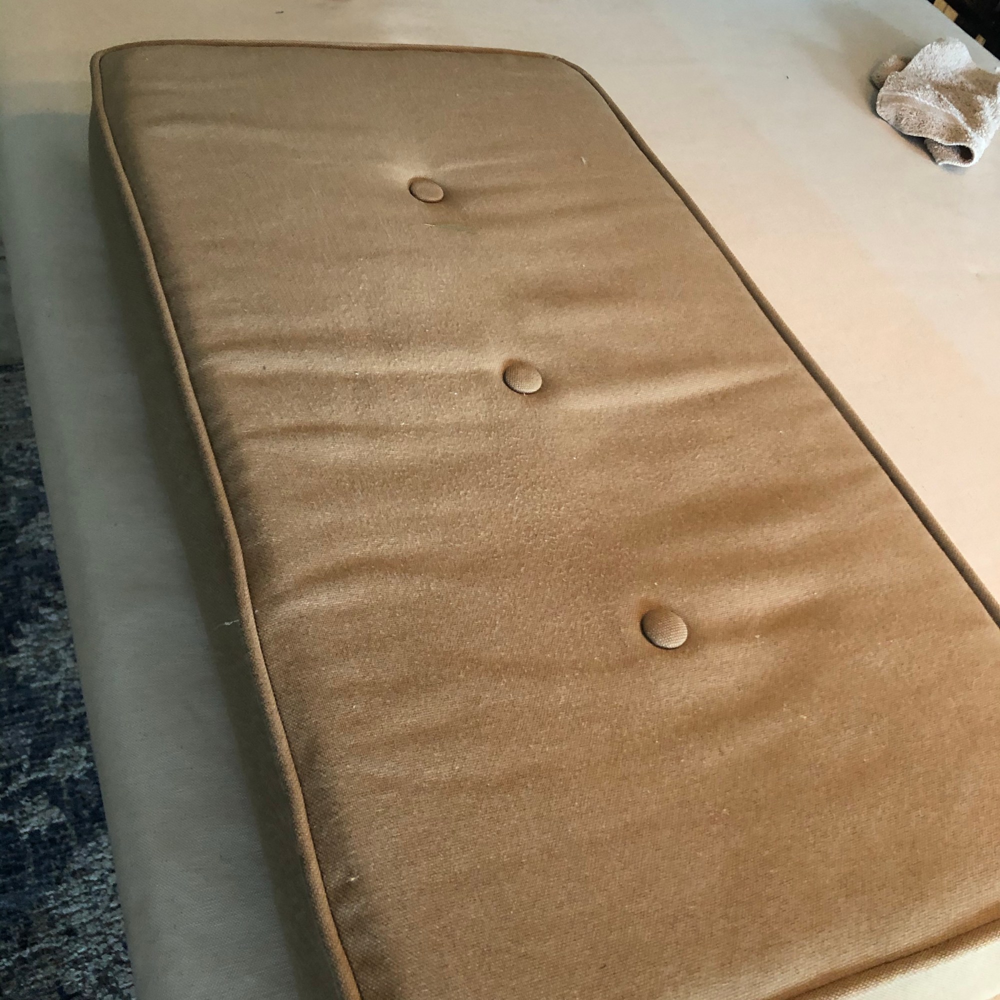If these benches weren’t perfect for the end of the bed, I wouldn’t have bothered redoing them. After all, they probably cost $80 a piece at the time. But they were the perfect combination of size, functionality and storage. I needed all three. So I started by doing a tear down of the bench, removing the top, the cambric (to reuse if I could), the fabric and finally the foam. The foam definitely needed to be replaced as it had collapsed almost 1/2 inch. I ordered a firm foam from the Foam Factory and a performance fabric from Revolution Fabrics.