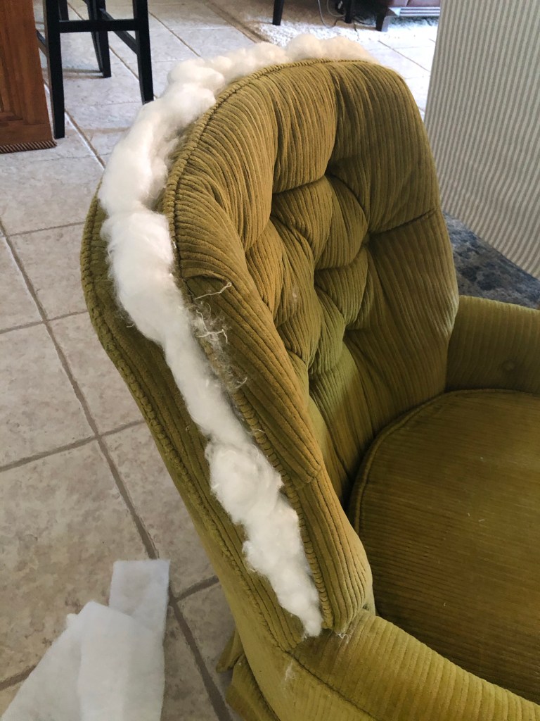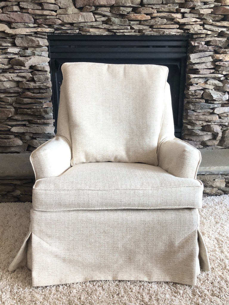 At first glance this old swivel rocker seems like an easy piece to slipcover. However after studying it for a bit, there were a few things to consider. It would be more challenging than originally planned, but as you will see, it turned out beautiful.