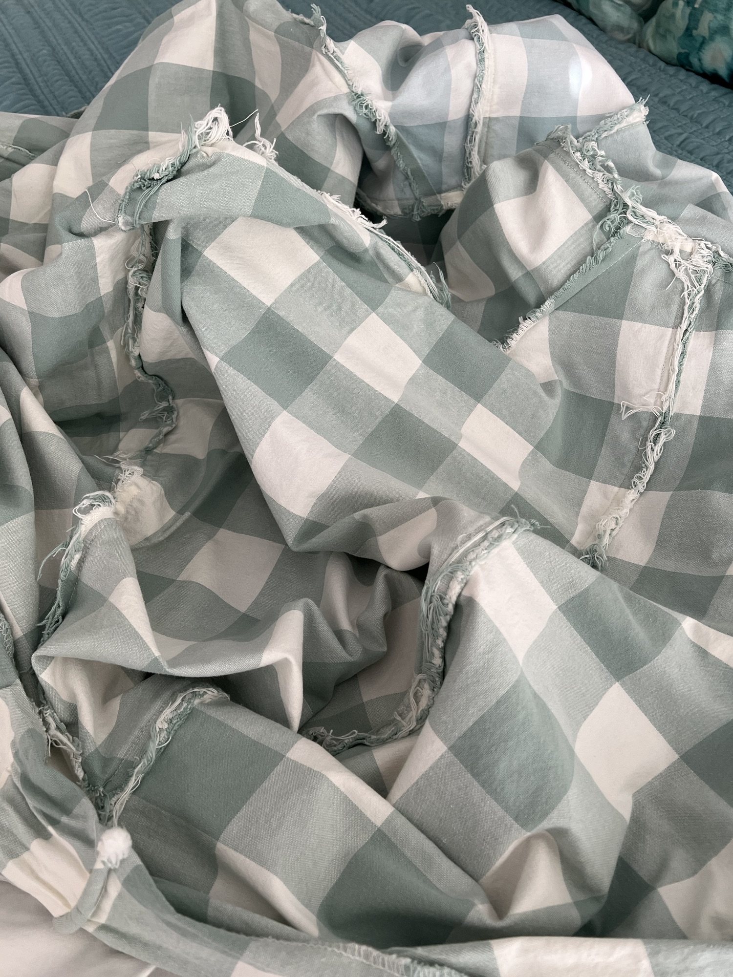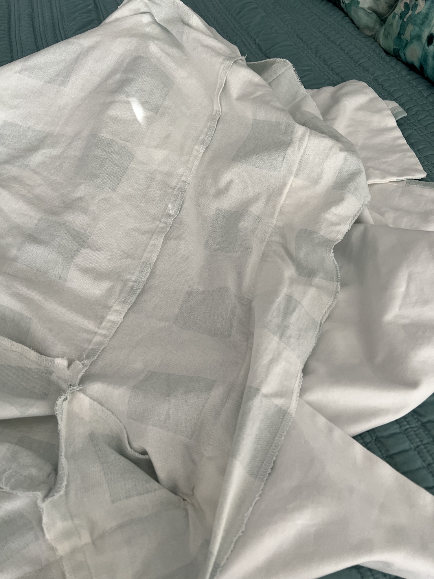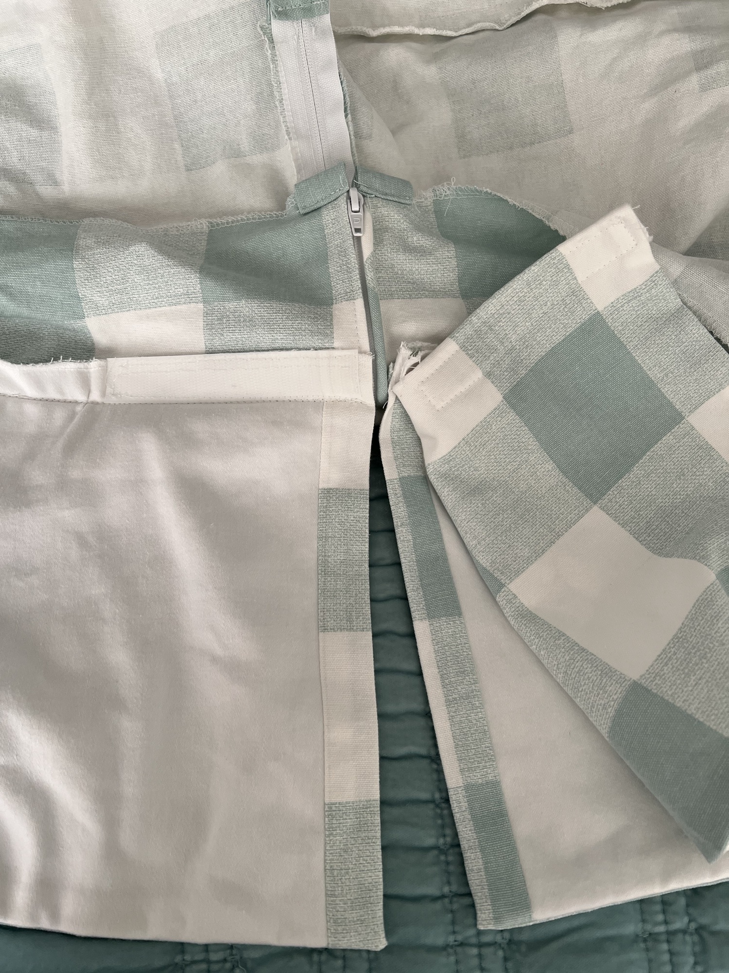 One thing that I always do with my slipcovers is to trim and serge all my seams. Un-serged seams, like on the original slipcover, can fray when a slipcover gets washed often. I could also tell the original was not pre washed as the slipcover had shrunk quite a bit.