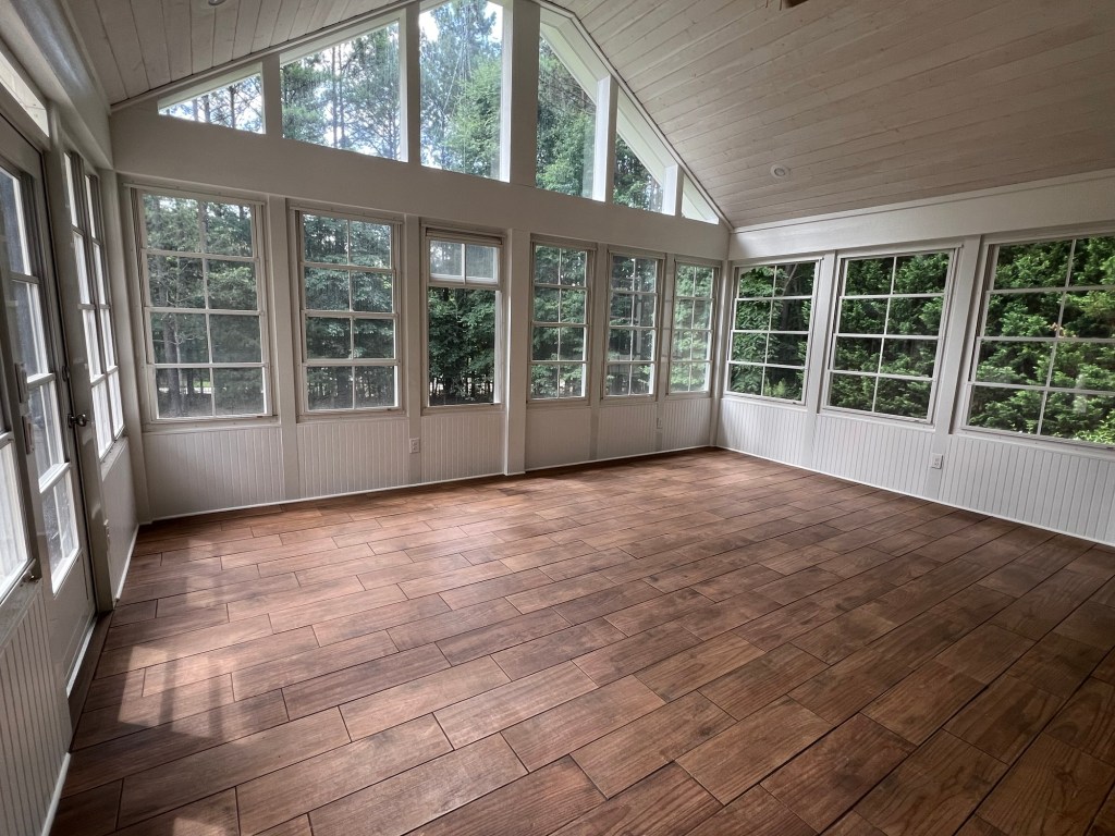 When we first moved into our current house, I had a fairly clear vision for what I wanted in the enclosed back porch. I wanted my thrifted long mid century table for family gatherings, game nights and just sitting around chatting. I also wanted to have a nice sitting area for sipping coffee, reading a book, taking a nap or chatting.