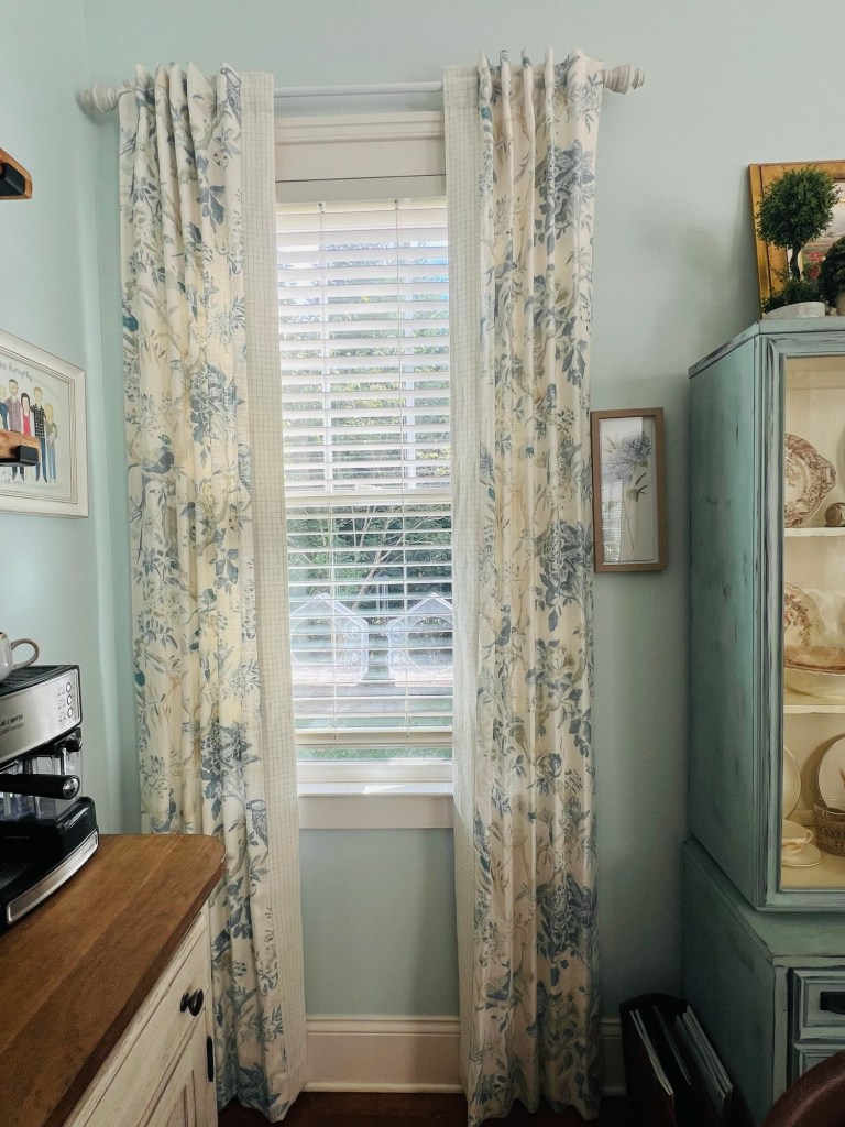 I have always said that my home just doesn’t feel complete without some window treatments on the windows. I know the trend can be to just leave the windows alone and do shades or blinds. Fortunately the windows already had blinds on them but it lacked the warmth that I was craving.